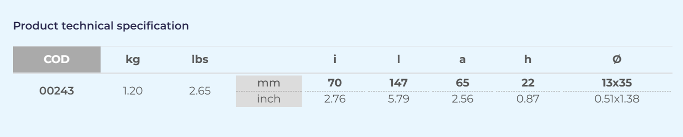 00243 / GÖVDE TUTYASI 147 x 65 x 22mm H.C. 70 / ÇİNKO
