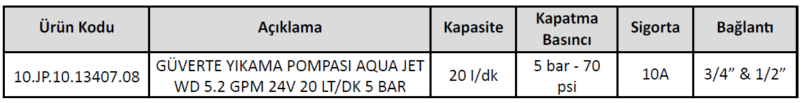 GÜVERTE YIKAMA POMPASI AQUA JET WD 5.2 GPM 24V 20 LT/DK 5 BAR