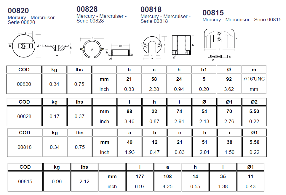 KITBRAVOI / MERCURY ANODE KIT FOR BRAVO ONE / ÇİNKO